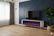 Ge ditt vardagsrum en lyxig och varm känsla med denna stilfulla TV-bänk som kombinerar funktion och design. Den inbyggda LED-eldstaden skapar en mysig atmosfär året runt, samtidigt som bänken erbjuder en modern och minimalistisk look som passar alla inredningsstilar.